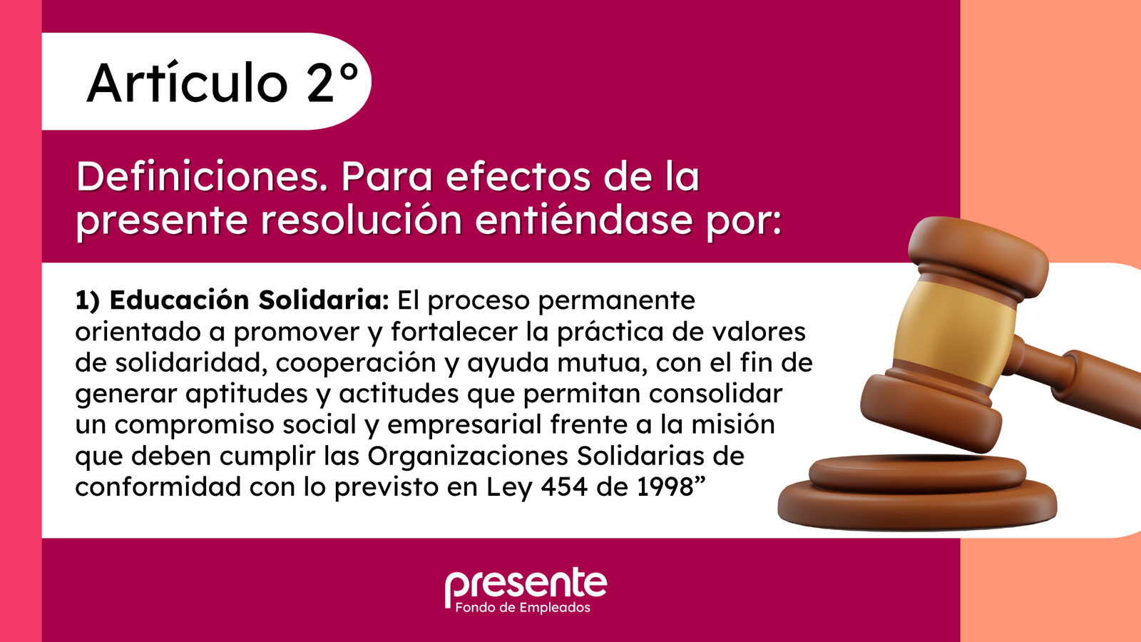 La Unidad Administrativa Especial de Organizaciones Solidarias expidió la Resolución 110 del 31 de marzo de 2016, la cual establece en su artículo segundo, la definición Conceptual sobre la Educación de Solidaria.