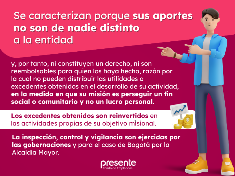 Estas organizaciones son sin ánimo de lucro y autogestionarias; es decir, que confluyen en la misma persona el ser gestor, administrador y usuario de los servicios que ofrecen a sus asociados únicamente.