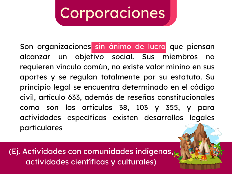 Son organizaciones sin ánimo de lucro conformadas por personas con intereses comunes. No tienen un número máximo de asociados, son de libre adhesión y se regula plenamente por su estatuto.