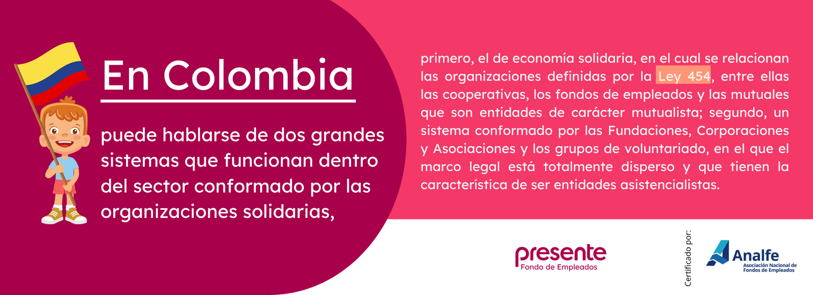 Las organizaciones de la economía solidaria son aquellas que cumplen con las características principios y fines contemplados en la ley 454 de 1998, siendo hoy: