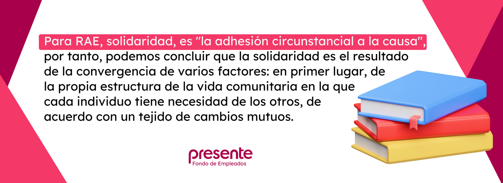 La solidaridad como expresión de ayuda mutua desinteresada y sin esperar nada a cambio, es un proceso dinámico en el cual las personas, que se encuentran marginadas se insertan en un movimiento de unidad identificado en sentimientos, necesidades, metas e intereses comunes, generando unidad y fortaleza; en consecuencia, el principal presupuesto para desarrollar la solidaridad es la integración.