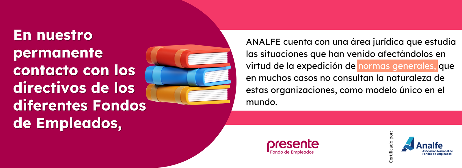 Dentro de las necesidades más latentes, estaba la revisión del vínculo de asociación, pues los movimientos normativos frente a las diferentes formas de contratación laboral que se venían adoptando en las empresas y las que se preveían iban a entrar en vigencia generaban incertidumbre frente a la redacción que traía el artículo 4 del Decreto Ley 1481 de 1989 donde limitaba la participación para ser asociados a los trabajadores dependientes. Ante esta situación, ANALFE lidera el proceso de análisis y de redacción de un proyecto de ley, dentro del cual se incluyen otros aspectos de interés para estas entidades y que se formaliza a través de la Ley 1391 de 2010.