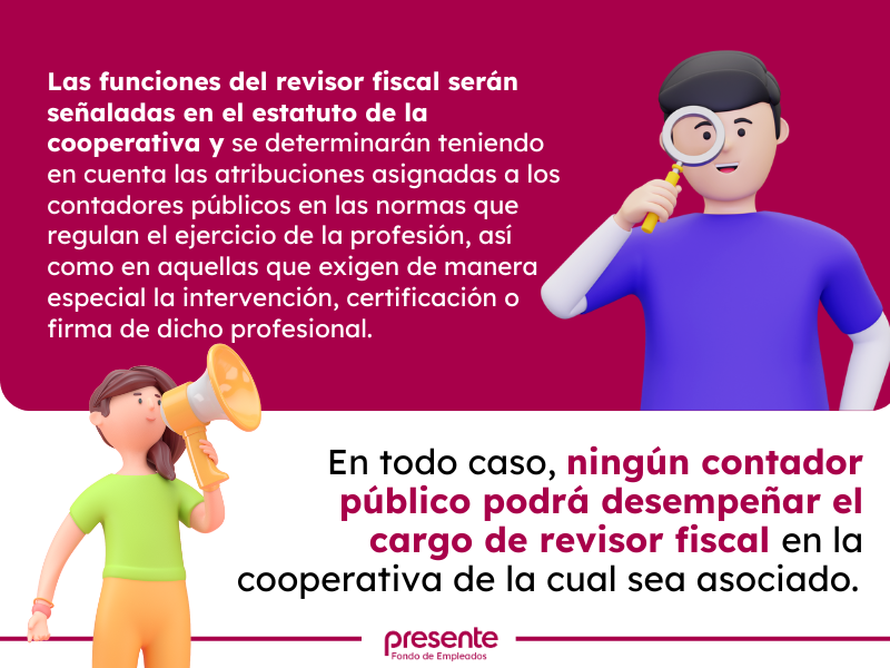 Por regla general la cooperativa tendrá un revisor fiscal con su respectivo suplente, quienes deberán ser contadores públicos con matrícula vigente. Podrán estar eximidos de elegir revisor fiscal aquellas cooperativas que a 31 de diciembre de cada año tengan activos inferiores a 300 SMMLV.