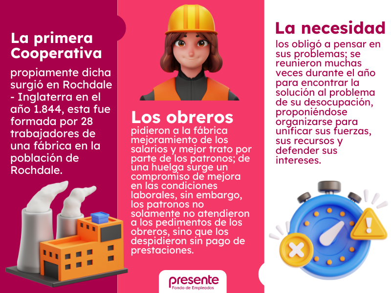 El Cooperativismo surgió como una de las alternativas de lucha utilizadas por los trabajadores para defenderse de las condiciones económicas y sociales que surgieron como consecuencia de la «revolución industrial».